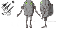 A robot looks like android OS logo mixed small biped machine from Nier Automata (in some way, it also looks like android OS logo), with desktop mini trash can head and rabbit ears and trail. View 3D M...